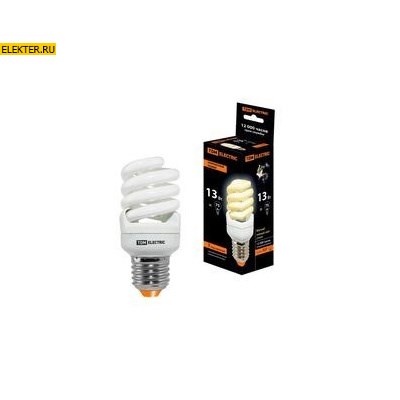 Лампа энергосберегающая КЛЛ-FSТ2-13Вт-2700К–Е27 КОМПАКТ (41х95 мм) TDM арт SQ0323-0179