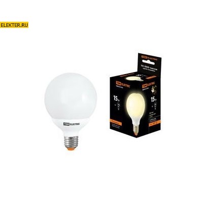 Лампа энергосберегающая КЛЛ-G80-15Вт-2700К–Е27 TDM арт SQ0323-0165