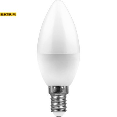 Лампа светодиодная FERON LB-570, C37 (свеча), 9W 230V E14 2700К (белый теплый), рассеиватель матовый белый, 800Lm, угол рассеивания 200°, 100*37мм