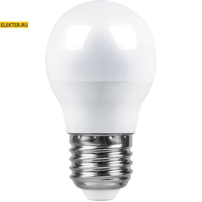 Лампа светодиодная FERON LB-95, G45 (шар малый), 7W 230V E27 4000К (белый), рассеиватель матовый белый, 580Lm, угол рассеивания 220°, 82*45мм