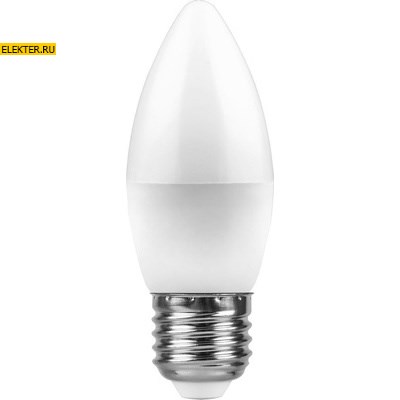 Лампа светодиодная FERON LB-97, C37 (свеча), 7W 230V E27 4000К (белый), рассеиватель матовый белый, 580Lm, угол рассеивания 200°, 100*37мм