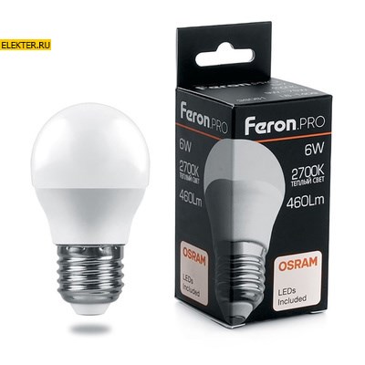 Лампа светодиодная Feron.PRO LB-1406 "Шарик" E27 6W 2700K арт 38068