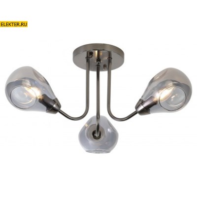 Rivoli Elisabeth (арт. 3094-303) люстры потолочные с тремя дымчатыми дизайнерскими плафонами оригинальной формы. Эффектное окрашивание благородного цвета черный жемчуг делает люстры Elisabeth удачным решением в гостиную. Стоит купить эти необычные люстры в современную кухню. Освещаемая площадь 9 м².
