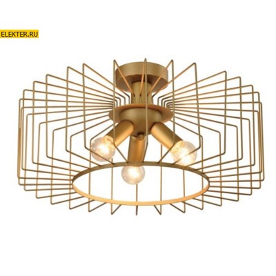 Люстры потолочные Rivoli Wilhelmina впечатляют необычным дизайном выверенный решетчатый абажур, стильный козырек над лампами, декоративные патроны, эффектное окрашивание яркого золотого цвета.